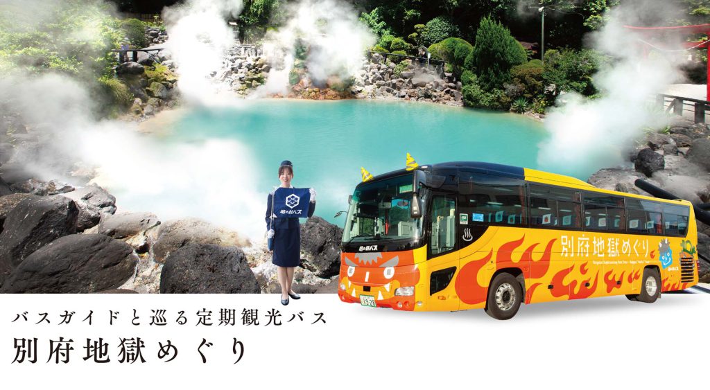 亀の井バス創業の原点である「別府地獄めぐり」定期観光バス。七五調の名調子も織りまぜながら約3時間の楽しいツアーとなっております。